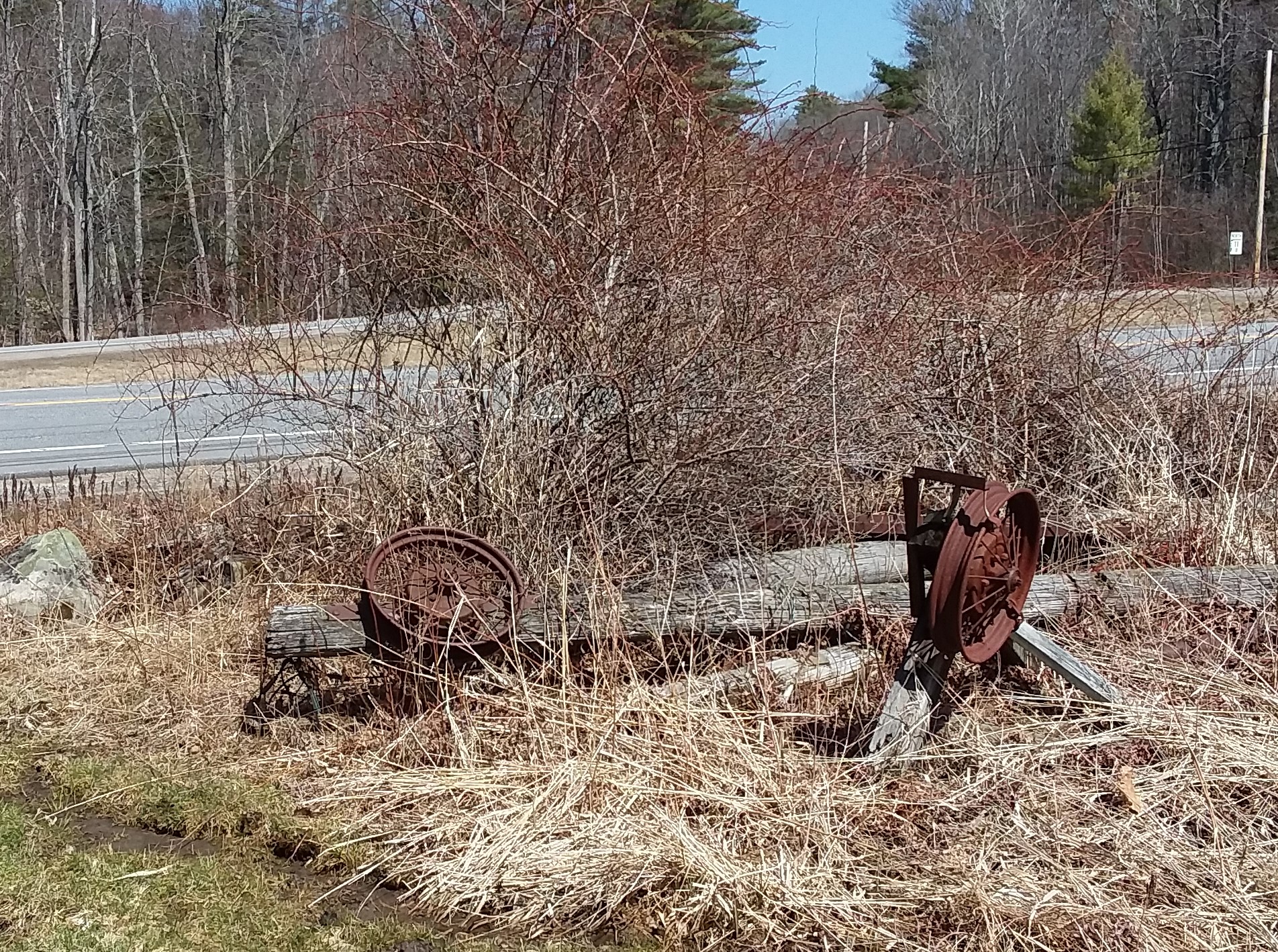 These wheel remnants at the Gilford Outing Club indicate a rope tow was in use to ferry skiers up the slope.