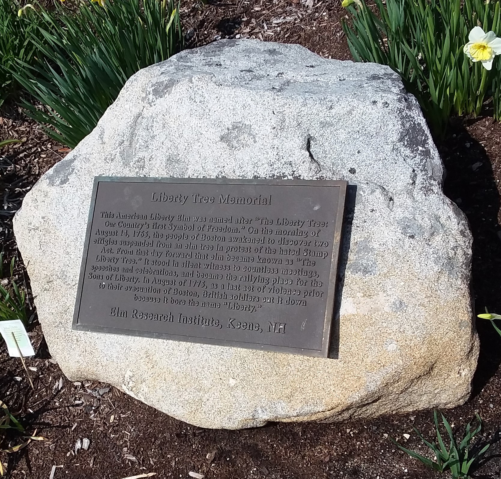 This "Liberty Tree Memorial" plaque tells the story of a 1765 protest act against the hated Stamp Act. The plague is in the garden in front of the Railroad Station. Double-click to read the text.