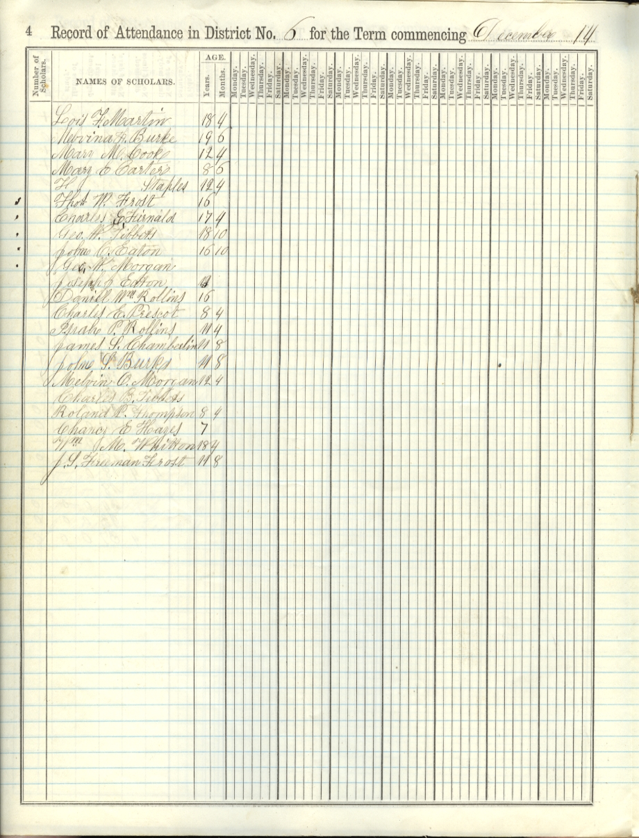 Martin Burke Cooke Carter Staples Frost Furnald Tibbets Eaton Morgan Rollins Prescot Chamberlin Thompson Hayes Whitton