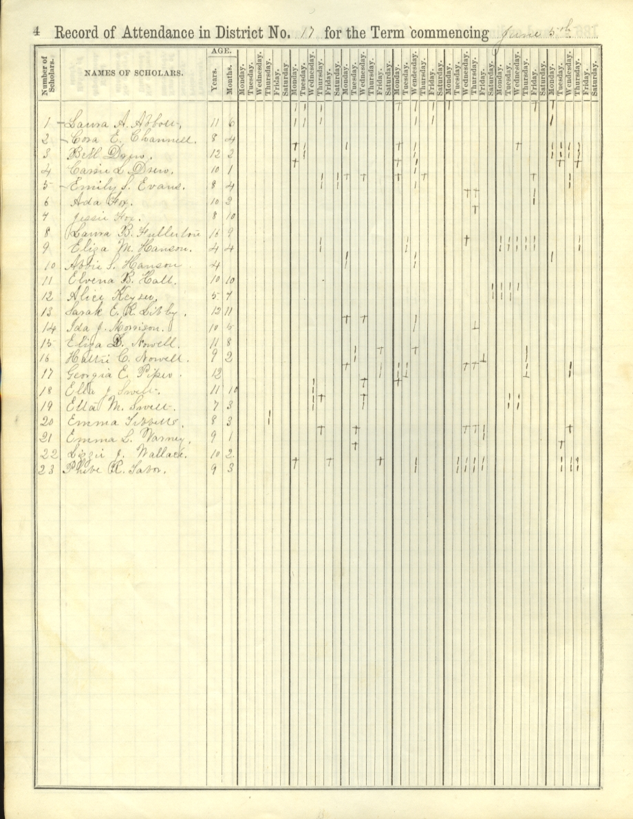 Abbott Channell Drew Evans Fox Fullerton Hanson Hall Libby Morrison Nowell Piper Swett Tibbetts Varney Wallace Tabor