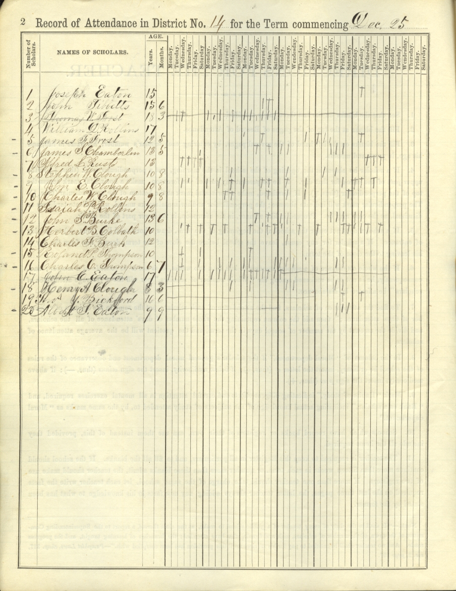 Eaton Tibbetts Frost Rollins Chamberlin Rust Clough Collins Burke Thompson Bickford
