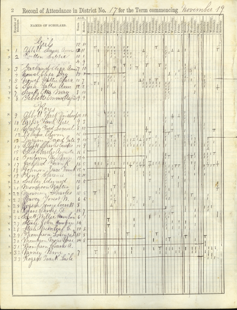 Wolfeboro Historical Society Digital Archive 19th Century School Registers 1860's 1867 |